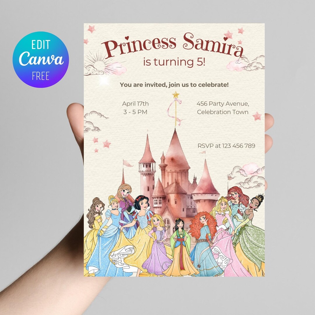 Editable Disney Princess Birthday Invitation Template | Beautiful Invite