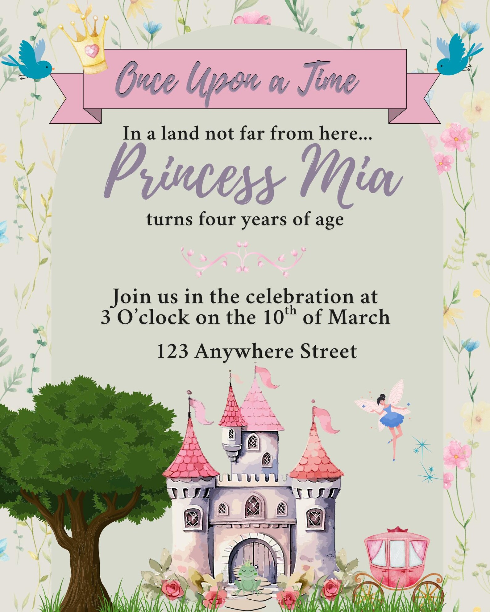 Princess Birthday Party Invitation At The Castle AI Generated Template ...
