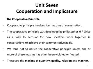 PRAGMATICS: COOPERATIVE PRINCIPLES | PPT