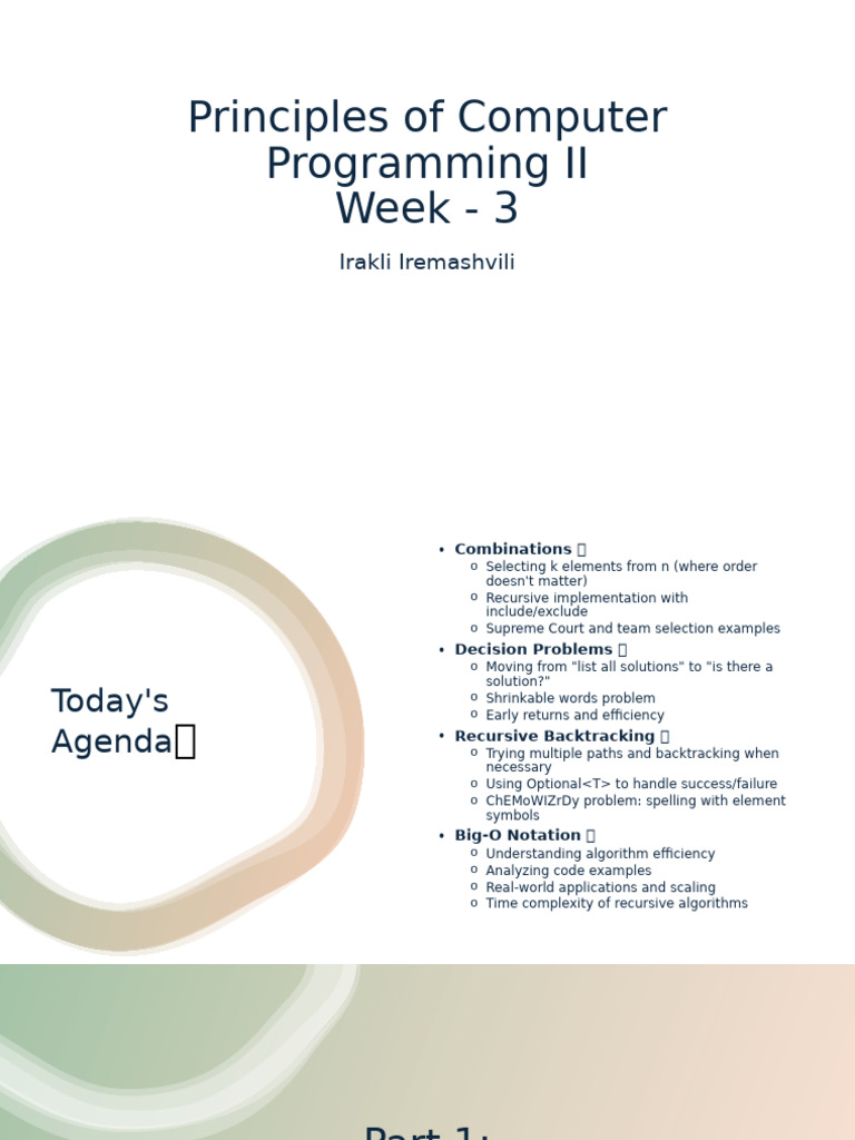Principles of Computer Programming II Week - 3: Irakli Iremashvili ...