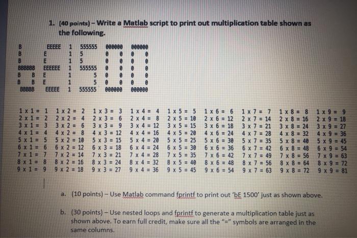 Solved 1. (40 points) – Write a Matlab script to print out | Chegg.com