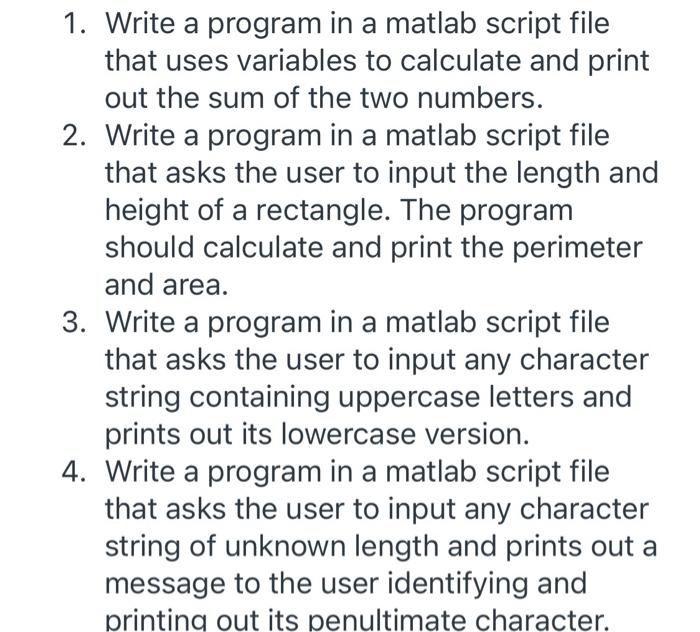 Solved 1. Write a program in a matlab script file that uses | Chegg.com