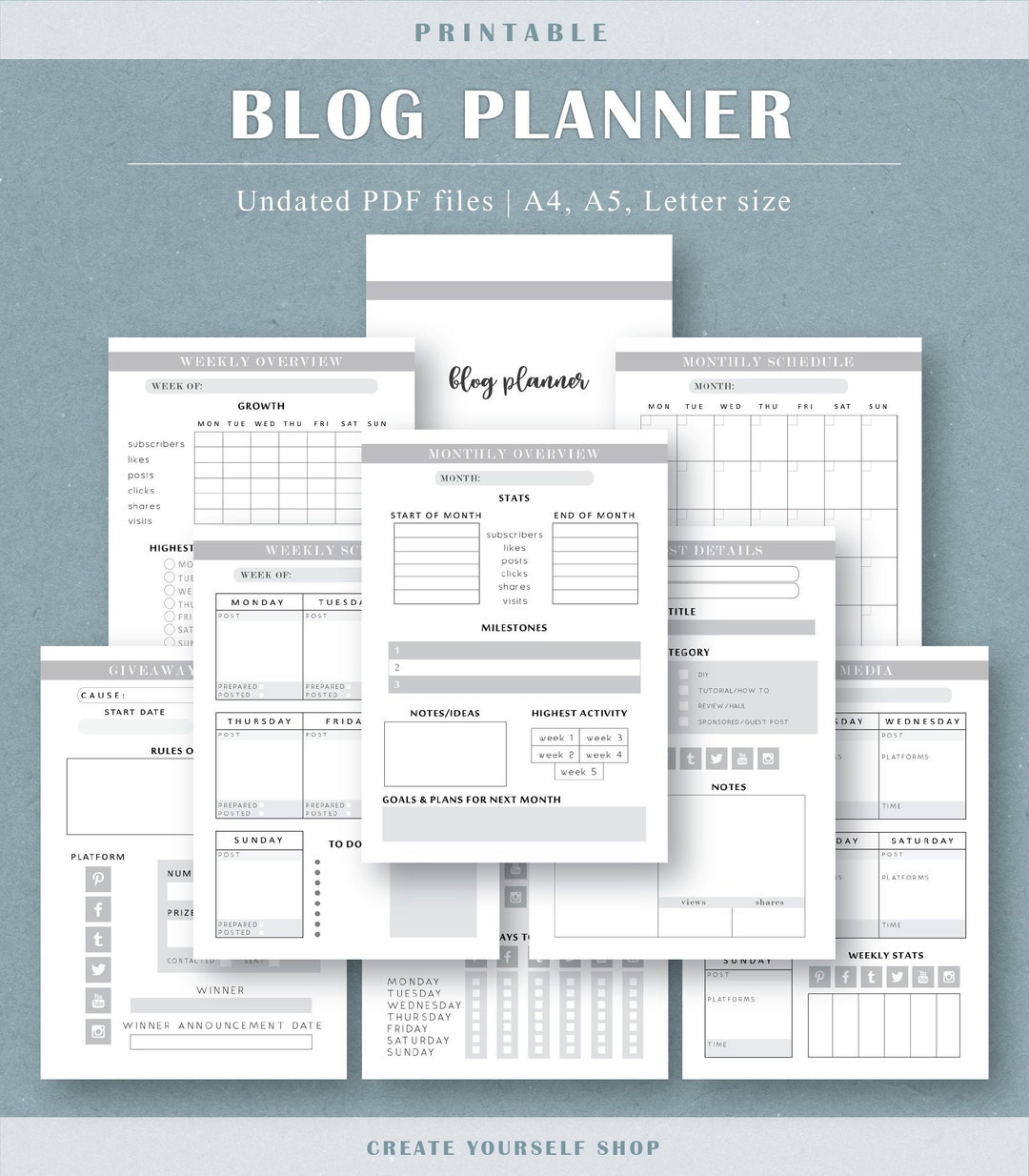 Printable Blog Planner, Printable Social Media Tracker, Blog Planner ...