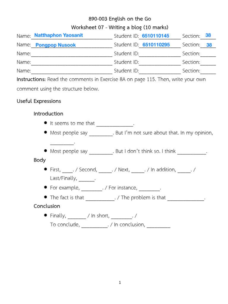 Blog Writing Worksheet Guide | PDF | Human Communication