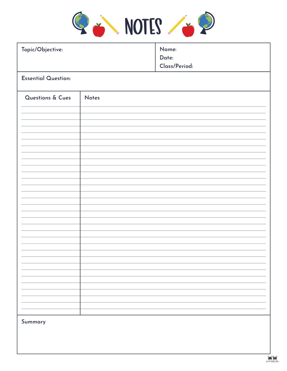 Print Cornell Note Sheets Printable Cornell Note Taking Template Pack