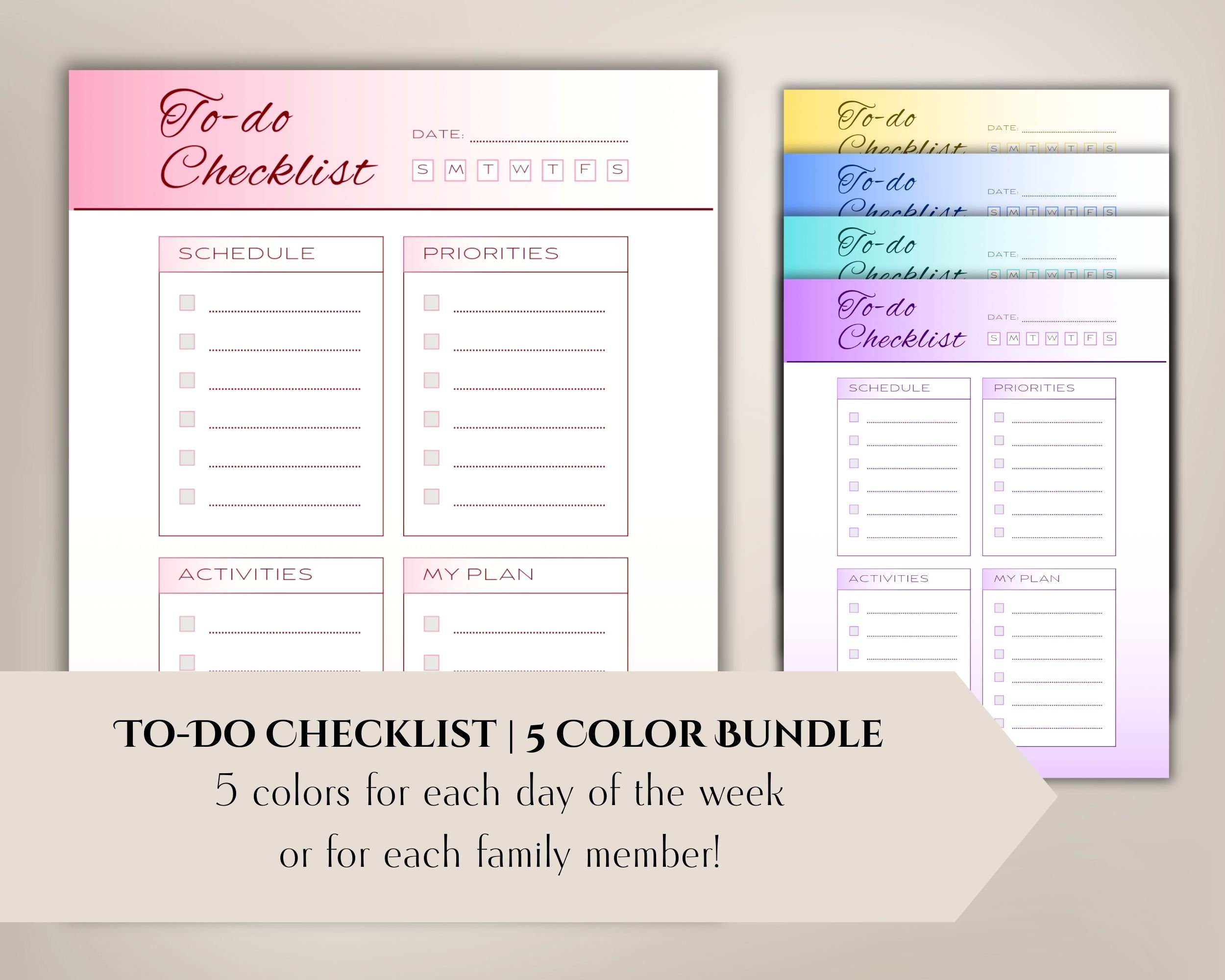 To Do Checklist Printable Color Bundle 1 to Do Checklist - Etsy