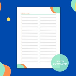 Blank Checklist Planner: 5 Color Options, Editable (PDF) - Etsy