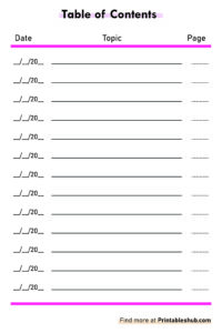 Printable Table of Contents Template - Word | Google Docs - Highfile