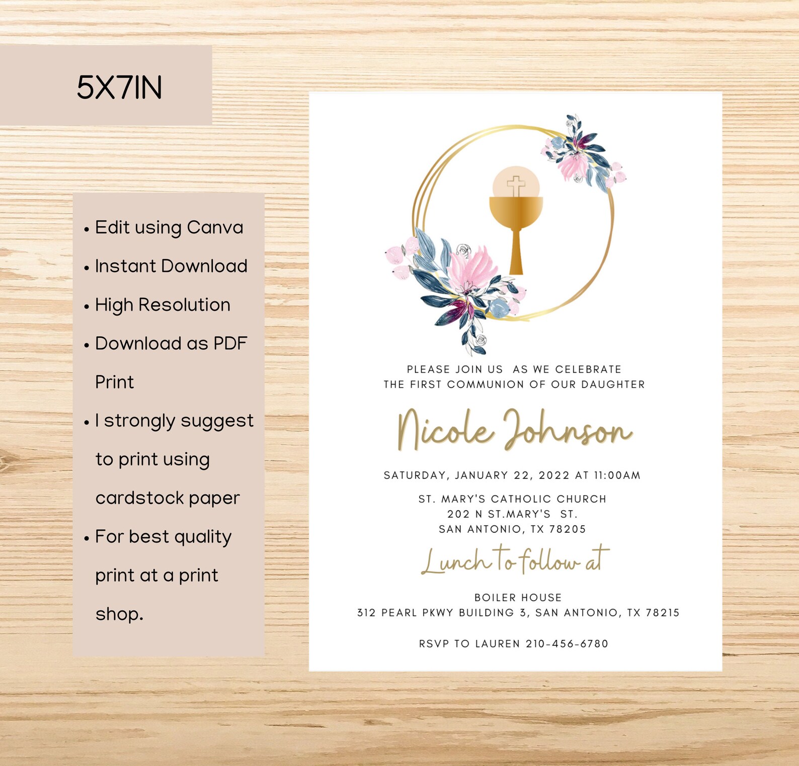 First Holy Communion Invitation Printable Template INSTANT DOWNLOAD ...
