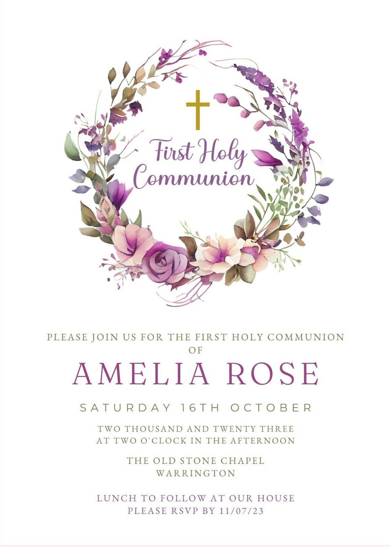 Girl First Communion Invites Floral First Communion Personalised First