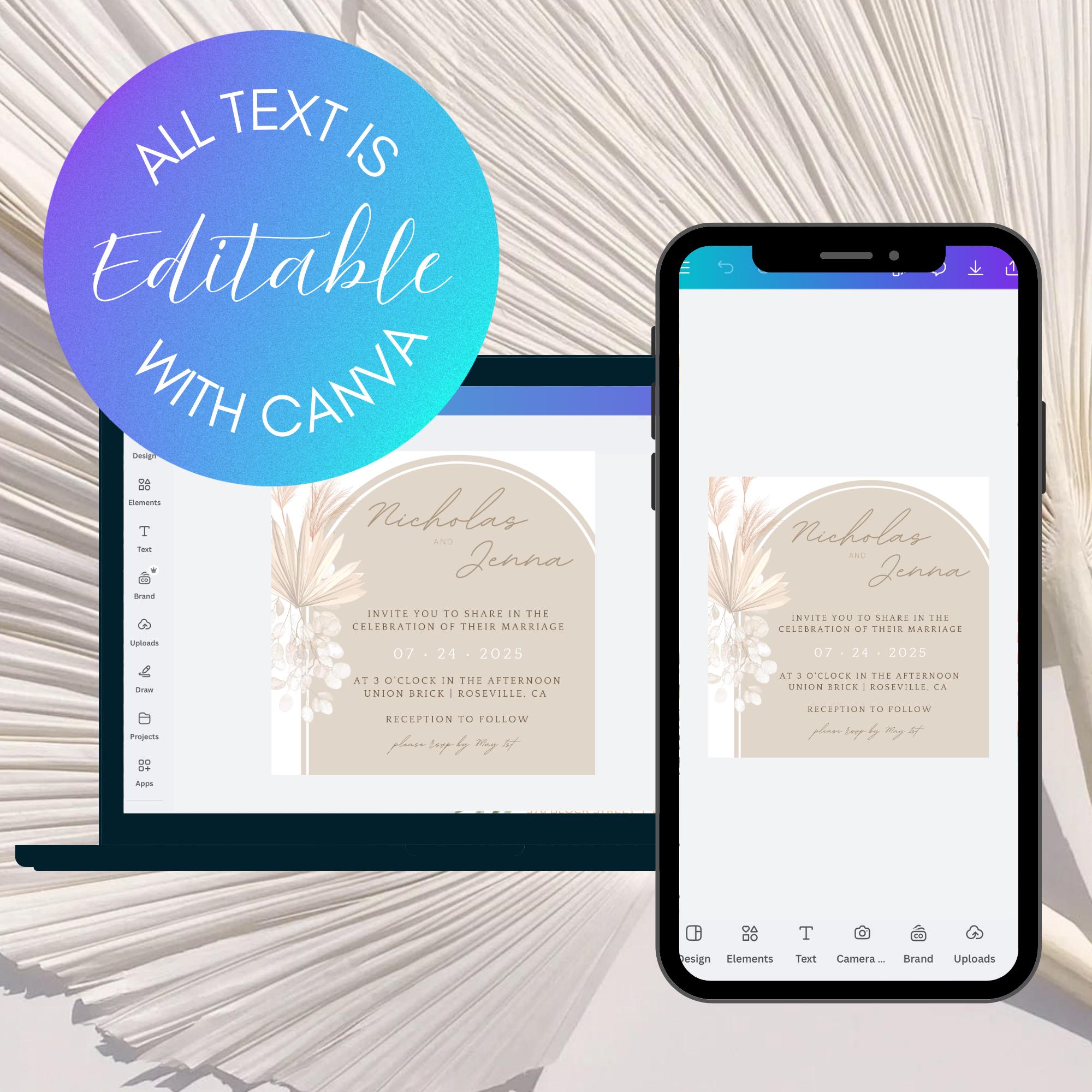 Square Modern Wedding Invitation Template Custom Printable Wedding ...