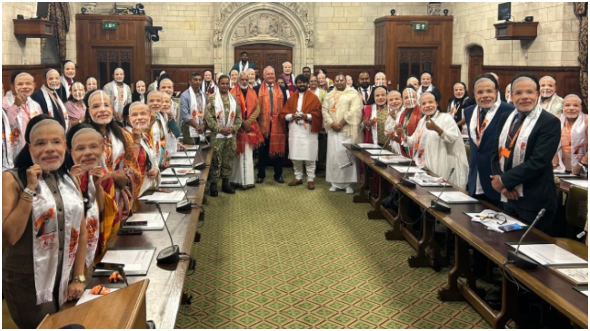 Attendees wear Modi masks as UK MP celebrates PM's birthday in Parliament