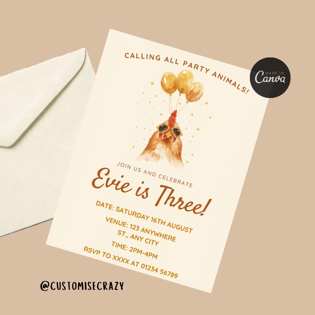 Farm Birthday Invitation Template | Editable Canva | Chicken Party ...