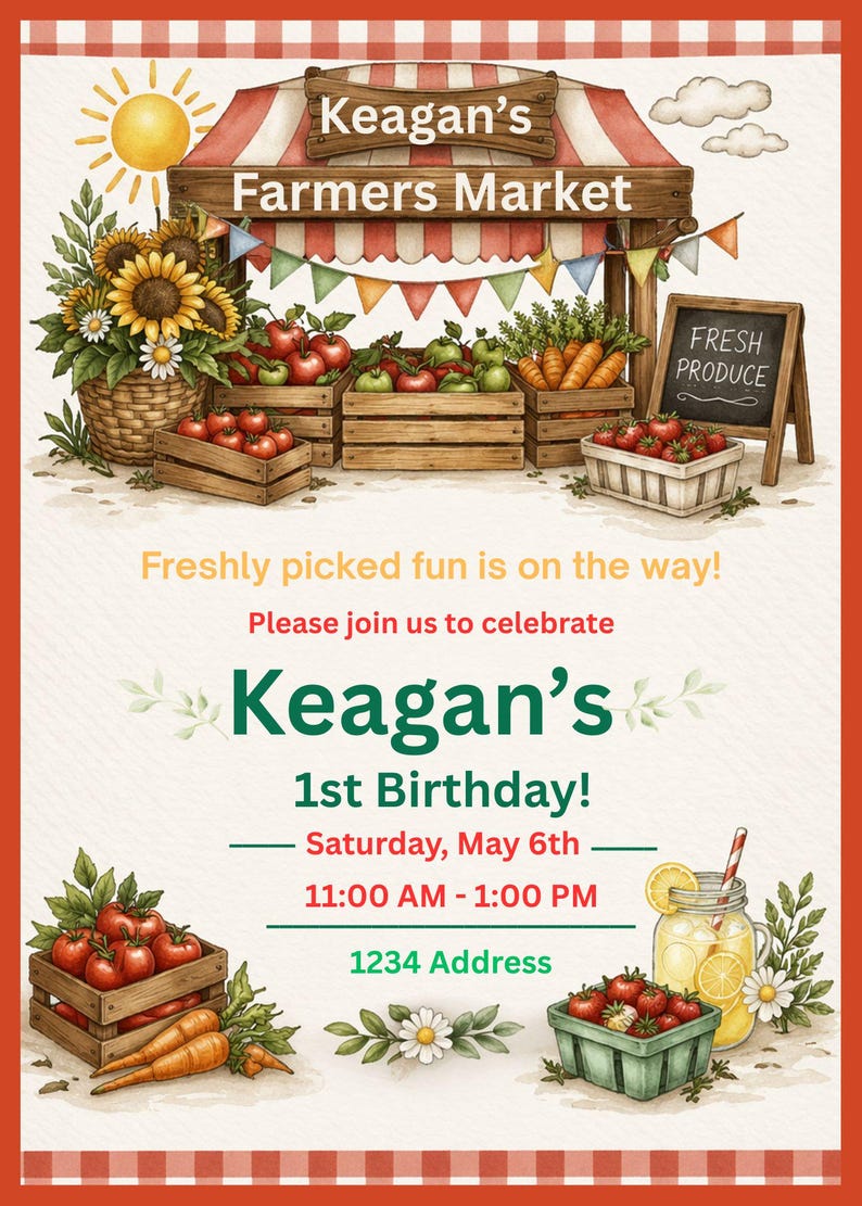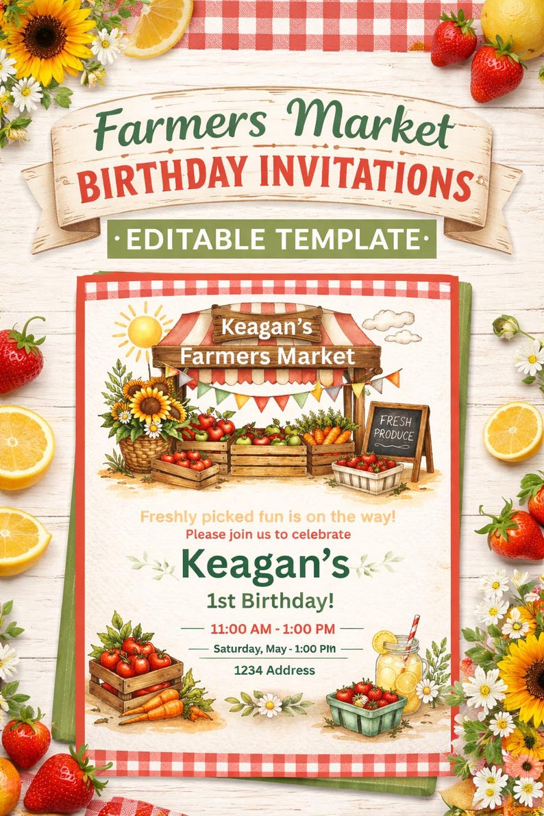 Farmers Market Birthday Party Invitation |printable Invite | Editable ...