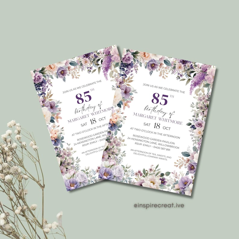 Elegant 85th Party Invitation Printable| Editable Canva Template ...