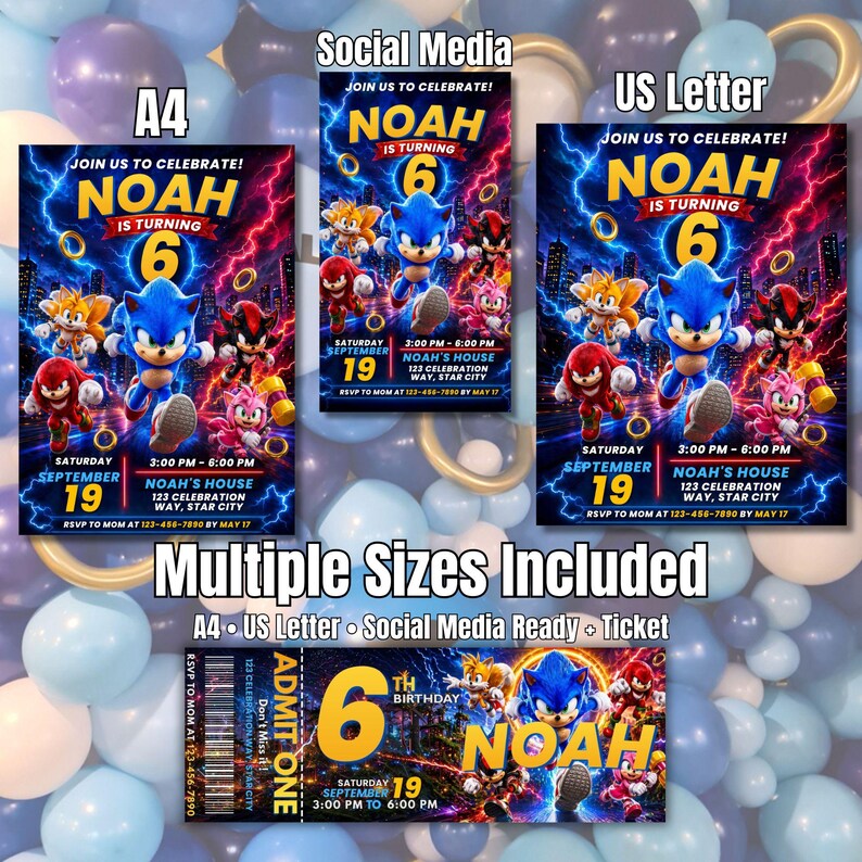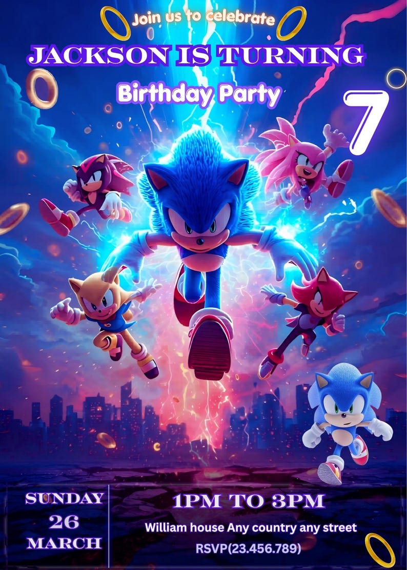 Editable Sonic the Hedgehog Birthday Invitation Template Digital ...