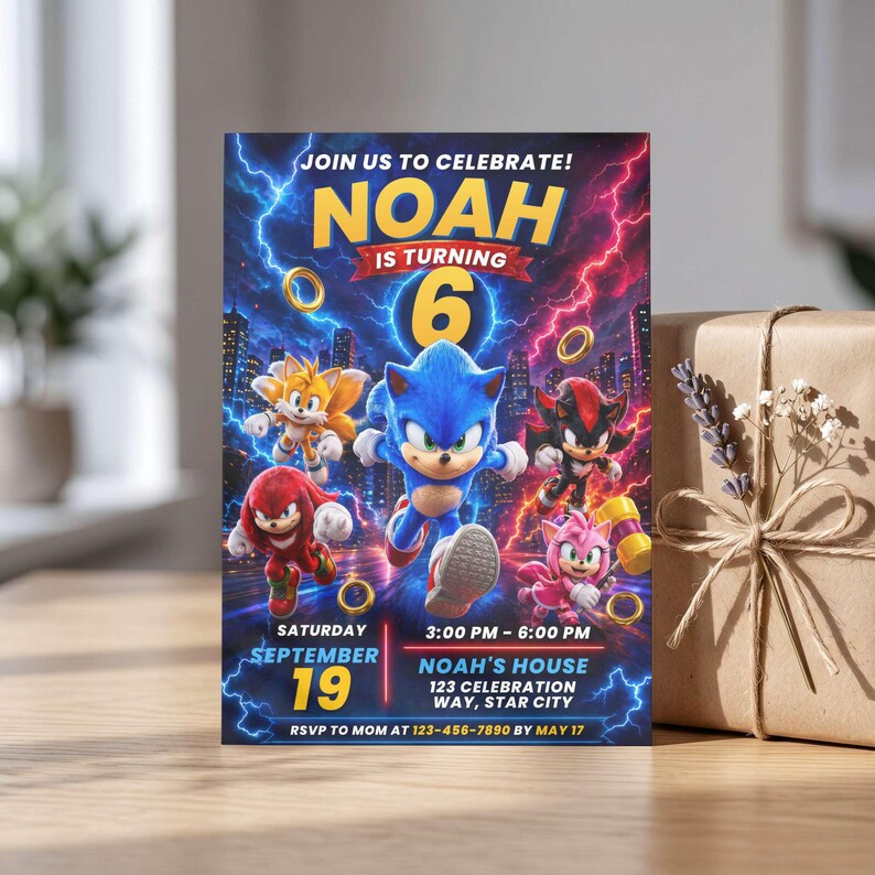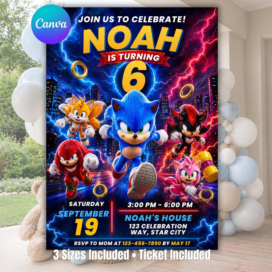 Sonic the Hedgehog Birthday Invitation, Boys Video Game Party Digital ...