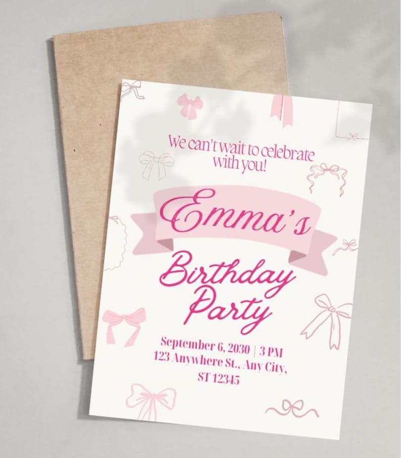Coquette Birthday Invitation Template Pink Bow Girl Birthday Invite ...