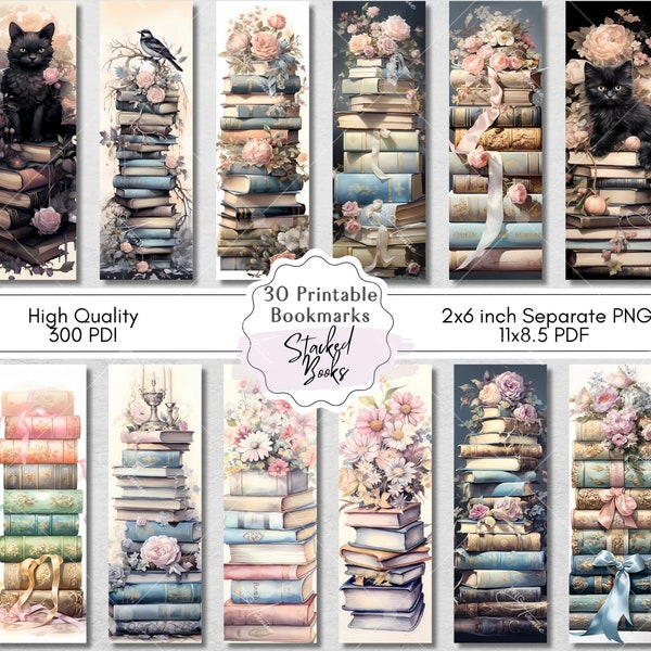 Stacked Books Printable Bookmarks Book Lovers Designs - Etsy UK