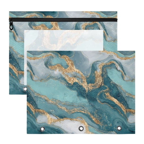 ALAZA Green Marble Golden Pattern Pencil Pouch 3 Ring Binder with Clear ...