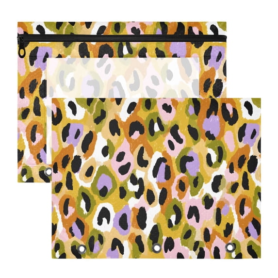 ALAZA Leopard Colorful Pattern Pencil Pouch 3 Ring Binder with Clear ...