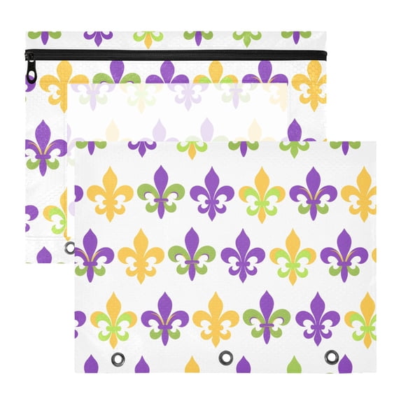 ALAZA Mardi Gras Flower Pattern Pencil Pouch 3 Ring Binder with Clear ...