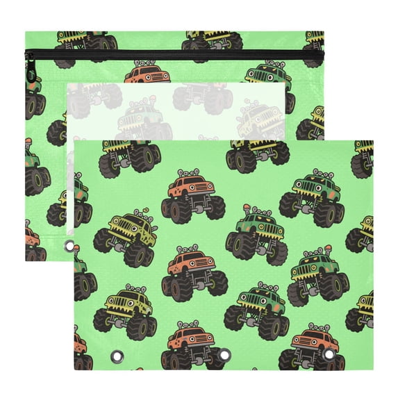 ALAZA Trucks Cartoon Green Pattern Pencil Pouch 3 Ring Binder with ...