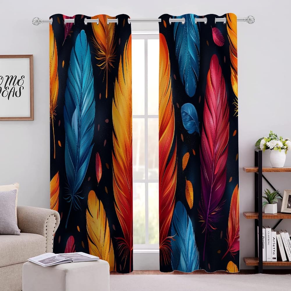 Blackout Curtains Bright Colorful Feathers Pattern, Simple Background ...