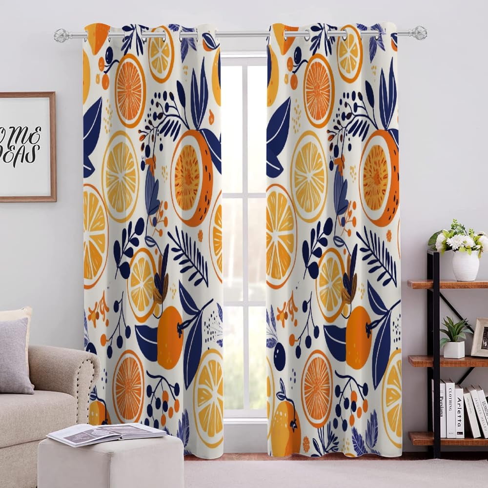 Blackout Curtains Fresh Orange Fruit Pattern, Dark Plant Leaves 3D ...