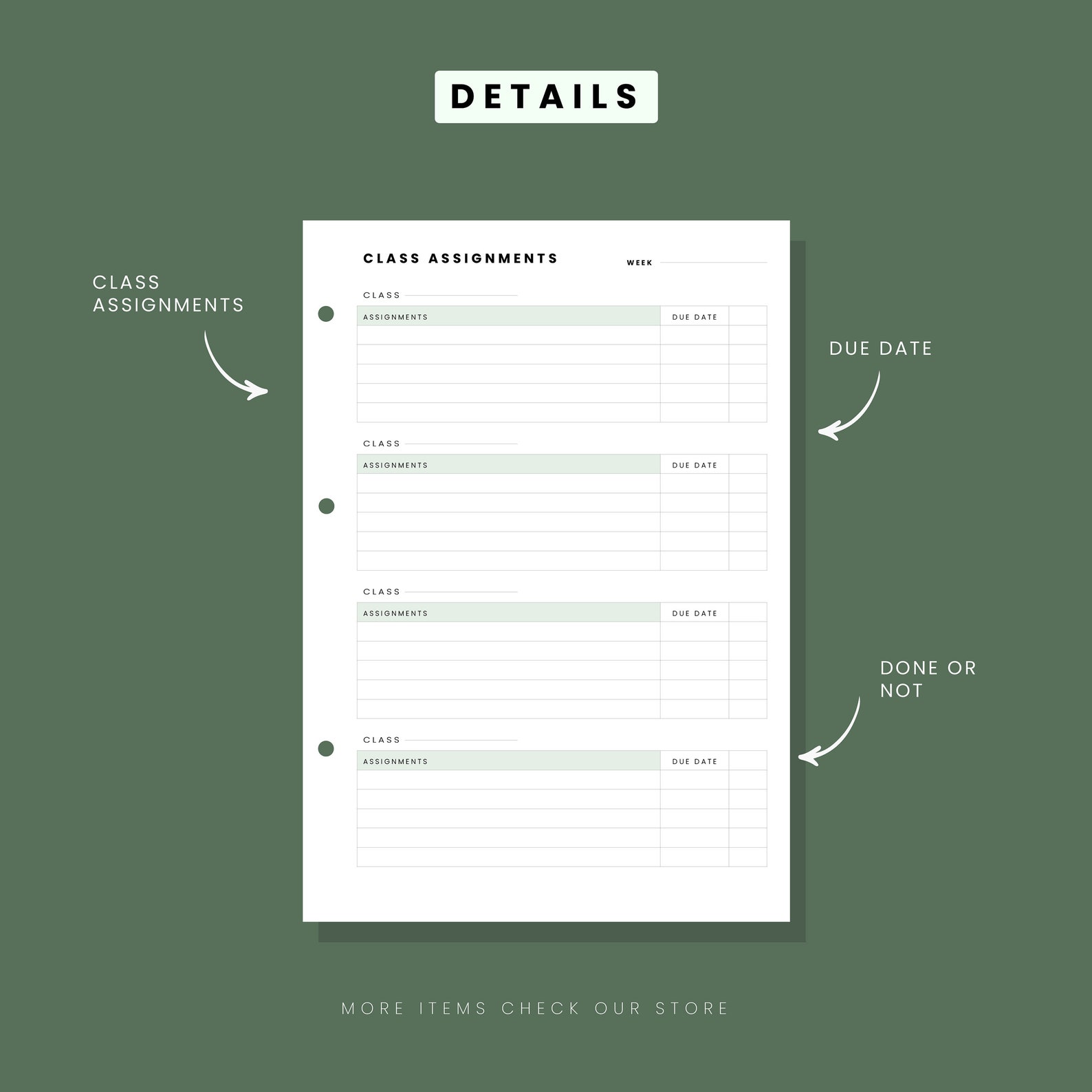 Printed Class Assignment Inserts A5 Size - Etsy | Homework organization ...