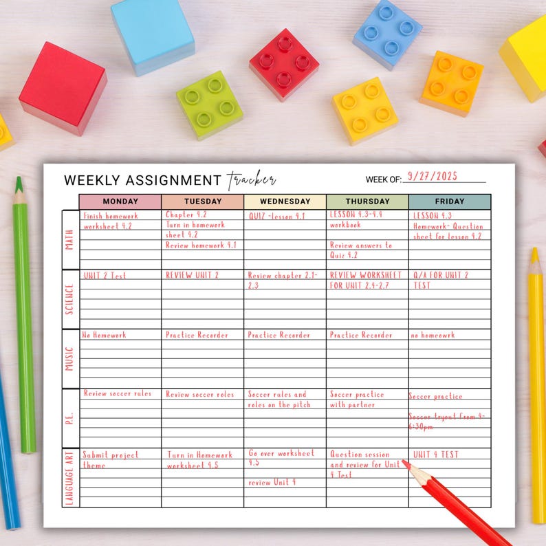 Weekly Assignment Tracker Printable, Homeschool Planner, Student ...