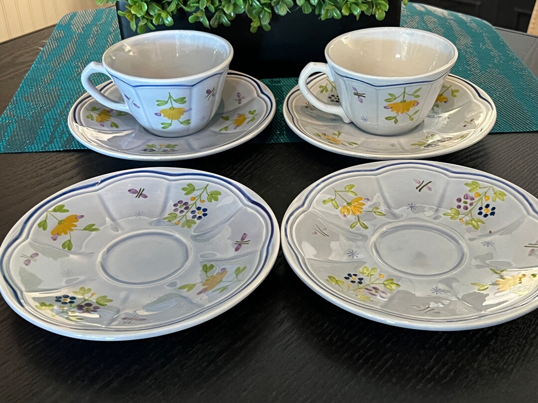 Vintage Longchamp Printemps Pattern Set of 2 Cups and Saucers Plus 2 ...
