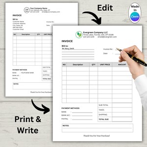Invoice Template Printable Invoice Business Form Editable - Etsy