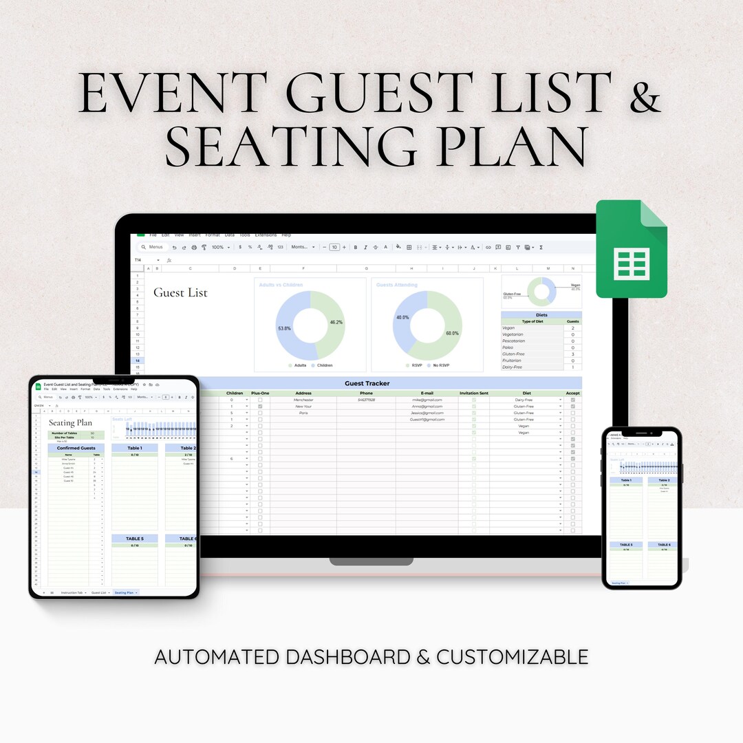 Event Guest List and Seating Plan Tracker, Wedding Seating Chart Event ...