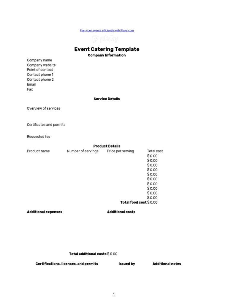 Event Catering Template Plaky | PDF