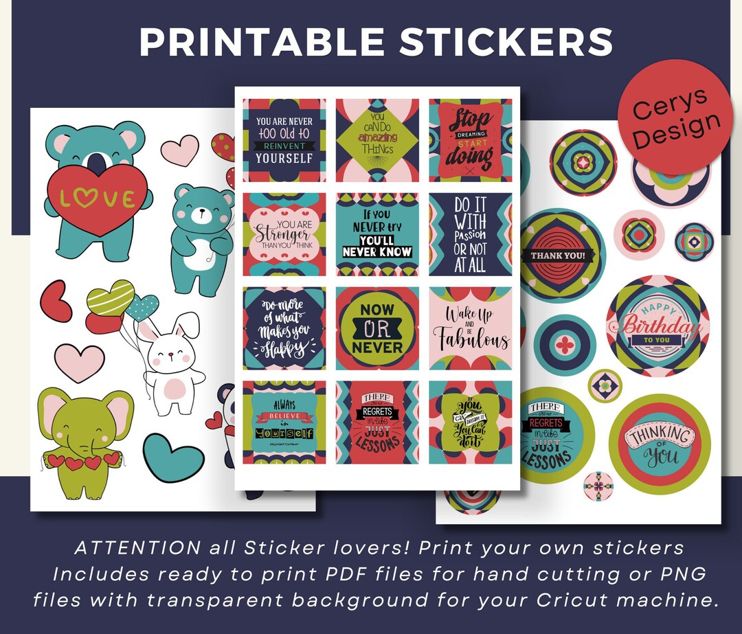 PRINTABLE Stickers, Mixed Stickers for Instant Download, Cricut Sticker ...