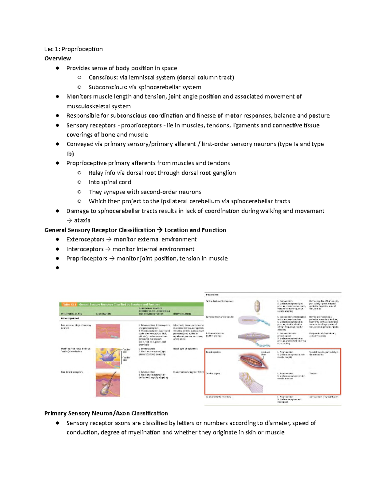 Lecture 12 Proprioception - Overview Sense of location/condition of ...