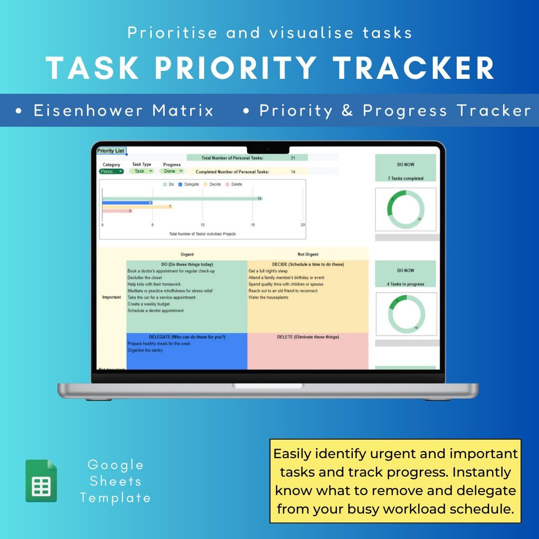 Task Priority Tracker Google Sheet Template - Eisenhower Matrix Urgent ...