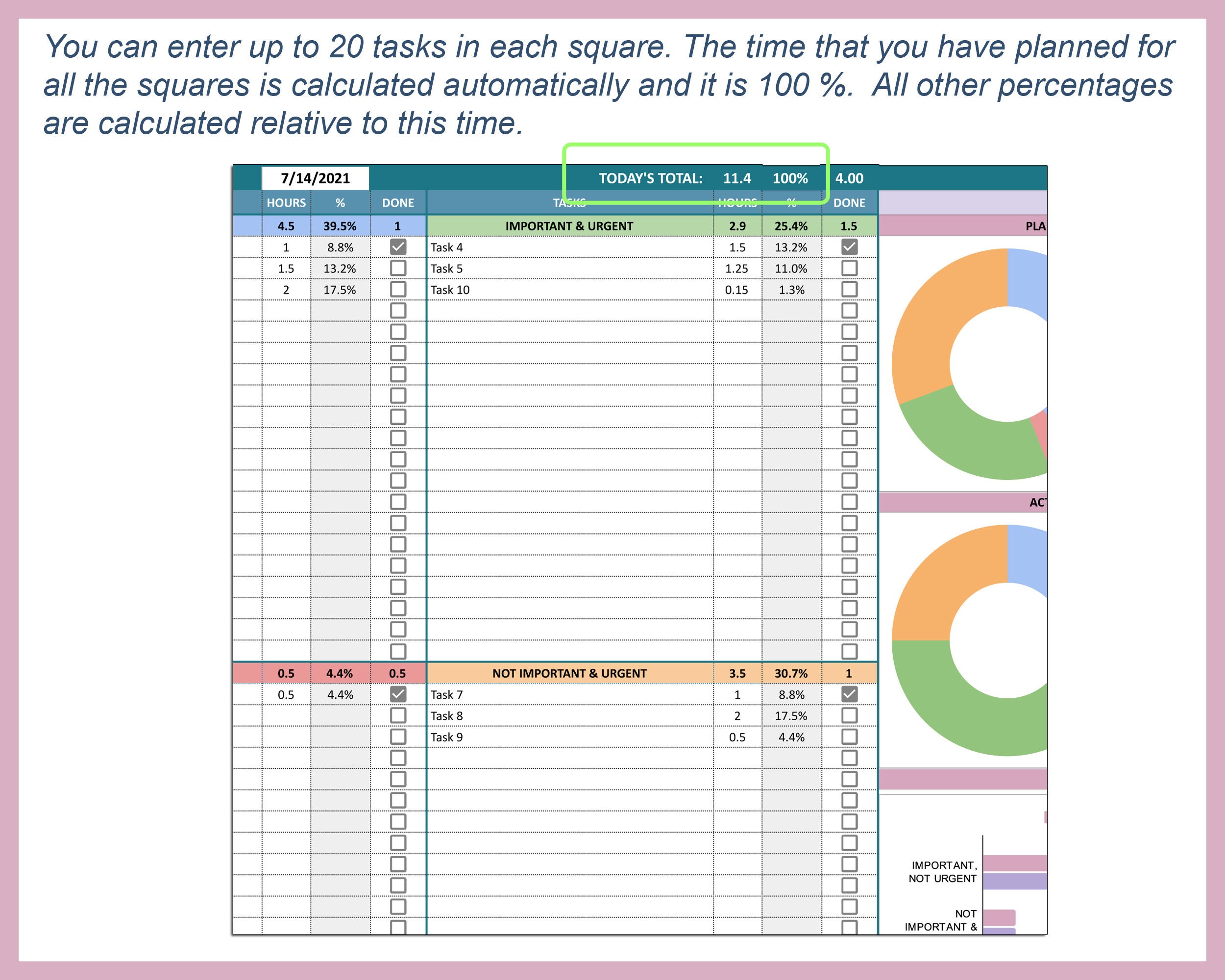 Excel 365 Task Priority Tracker Eisenhower Matrix Google Sheets Urgent ...