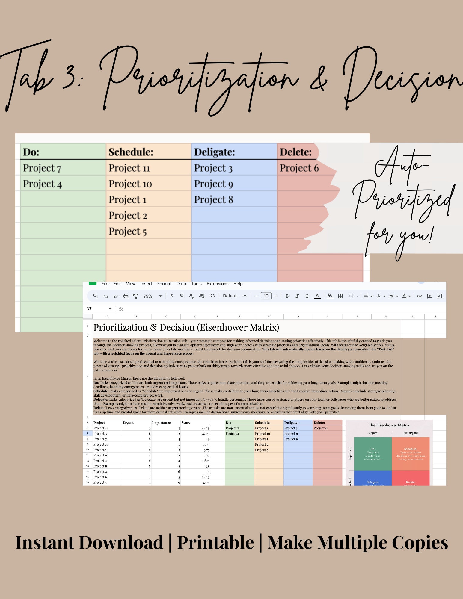 Decision Matrix: Task Priority Tracker | Google Sheet Template - Etsy ...