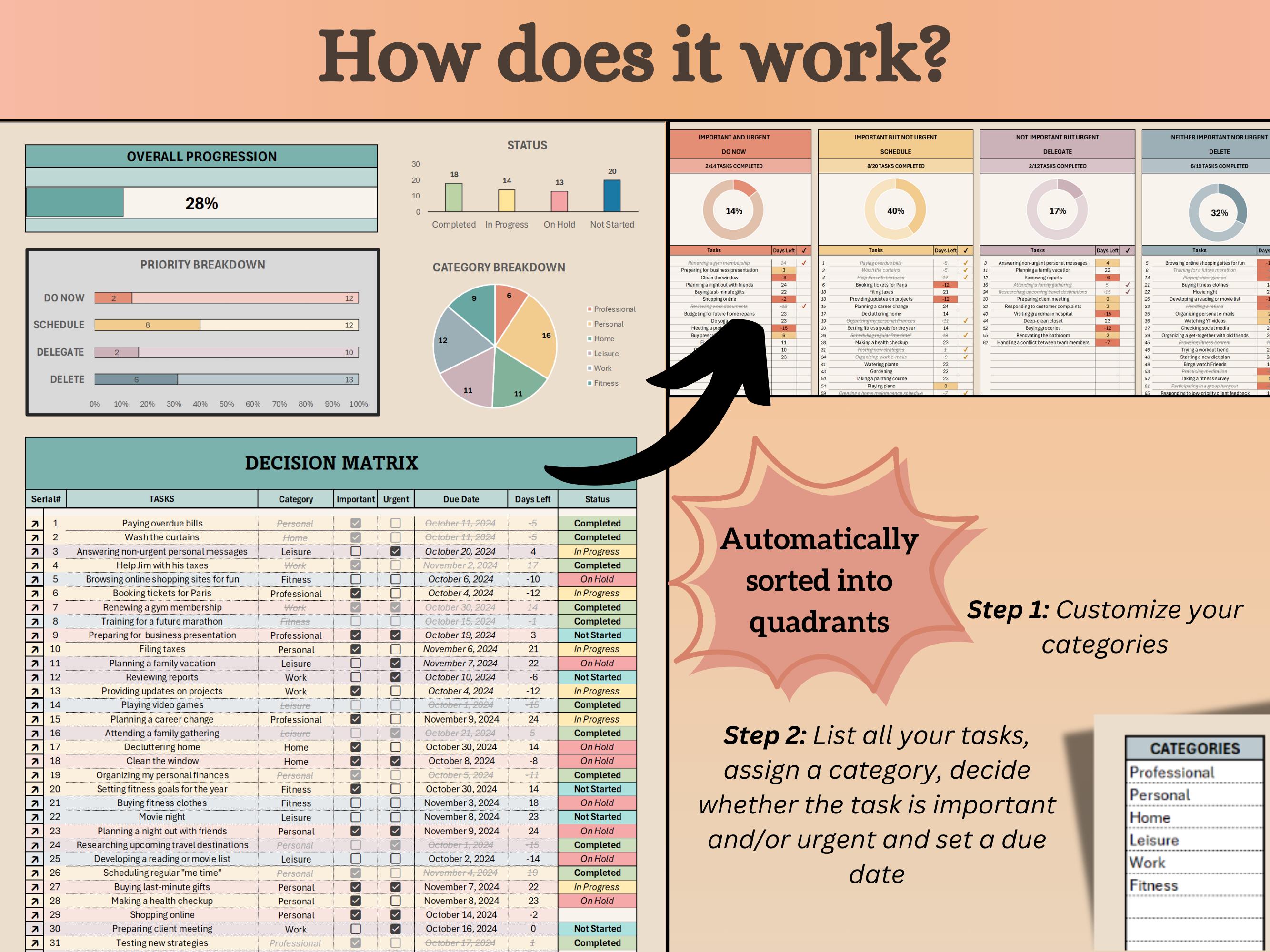 Task Priority Tracker: Eisenhower Matrix | Excel Template - Etsy