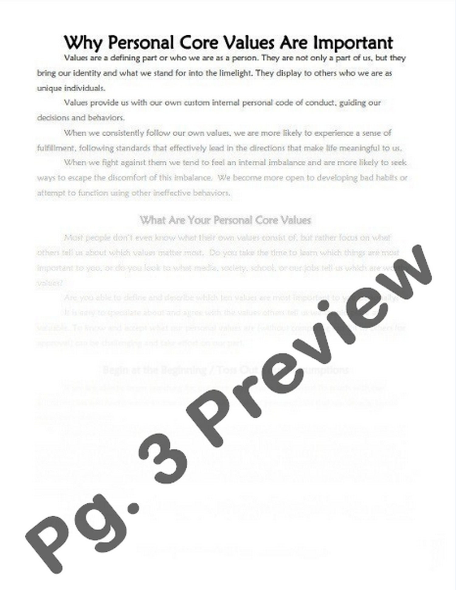 Free Printable Core Values Worksheet