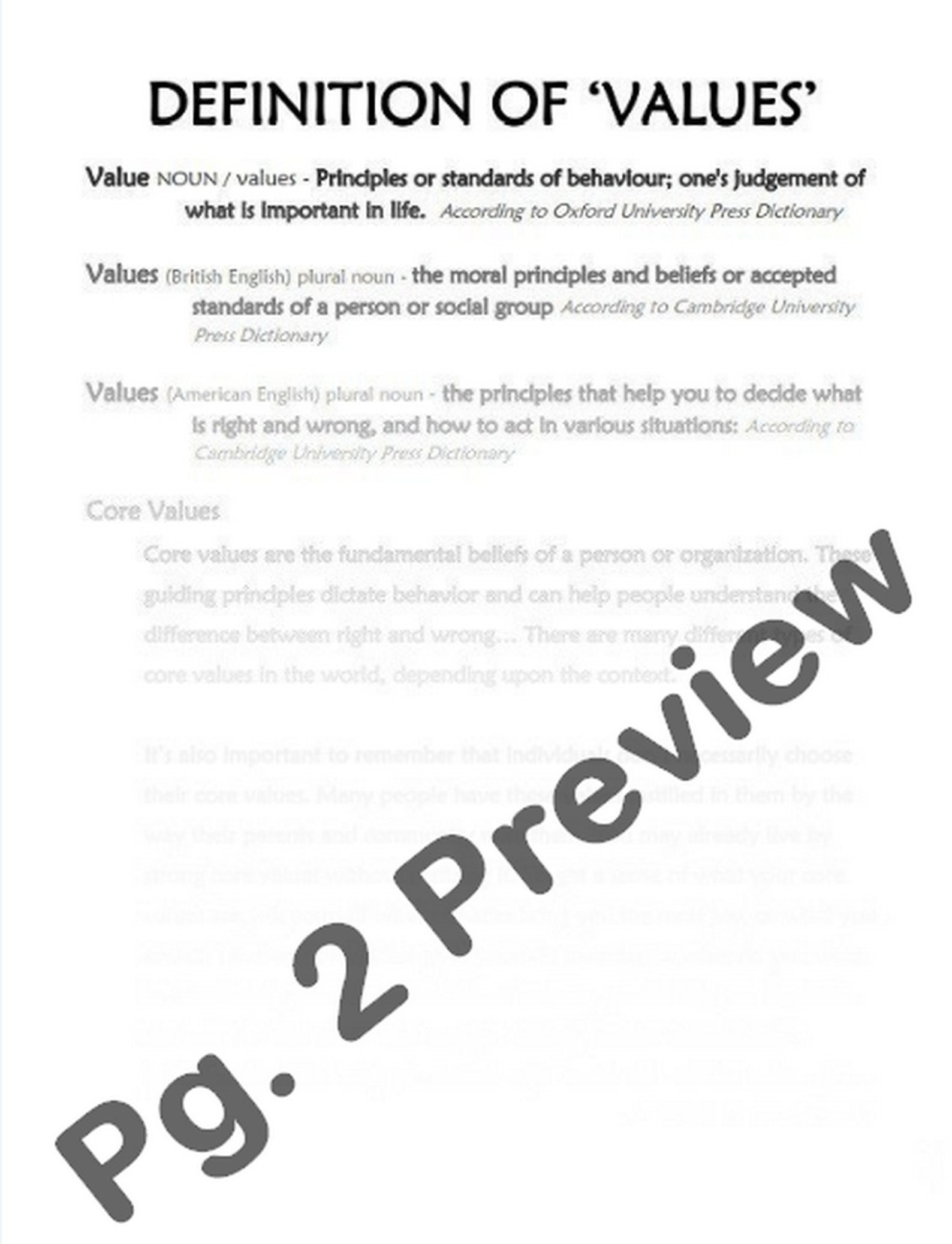 Defining Your Values - Activities and Worksheets by Brilliance Builders