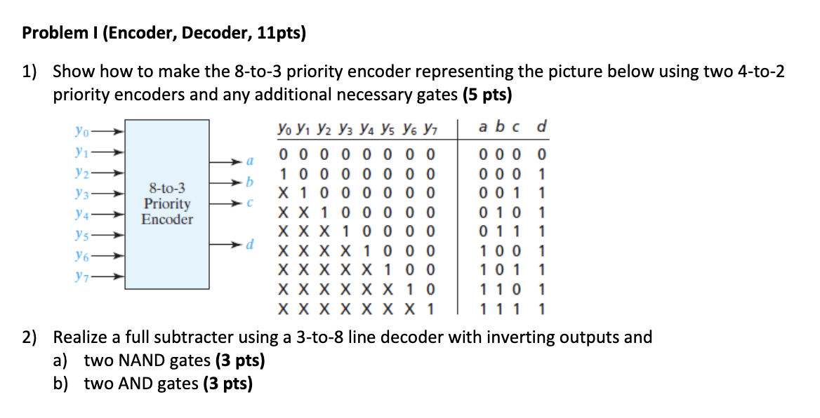 Solved 1) Show how to make the 8-to-3 priority encoder | Chegg.com