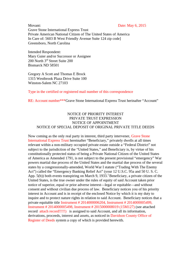 Notice of Priority Interest Expression Appointment Special Deposit ...