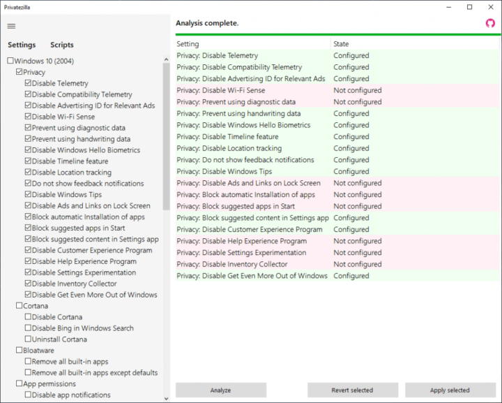 Privatezilla will help you check and change Windows 10 Privacy Settings