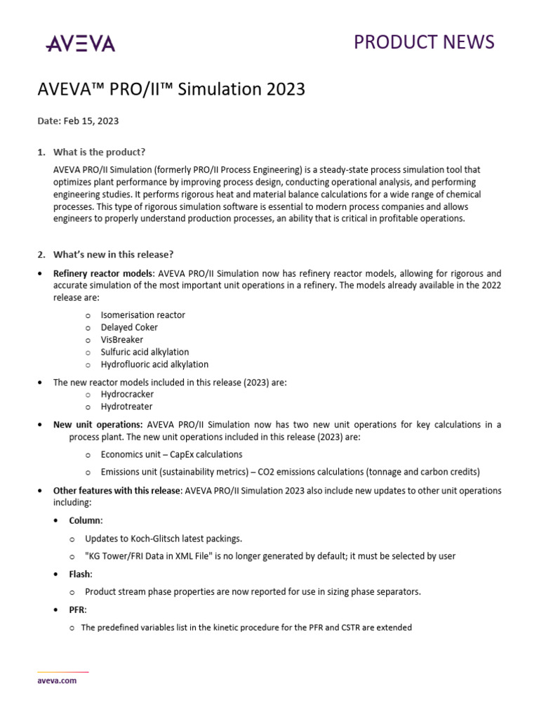 AVEVA PRO II Simulation 2023 Product News | PDF | Technology & Engineering