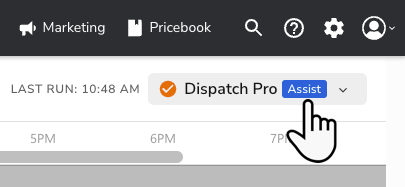 A cursor selecting the Dispatch Pro button at the top of the ...