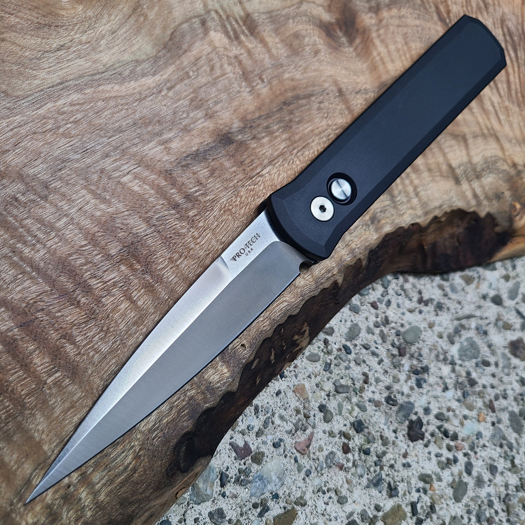 Pro-Tech Godson Black Aluminum Spear Point Automatic Knife 154CM ...