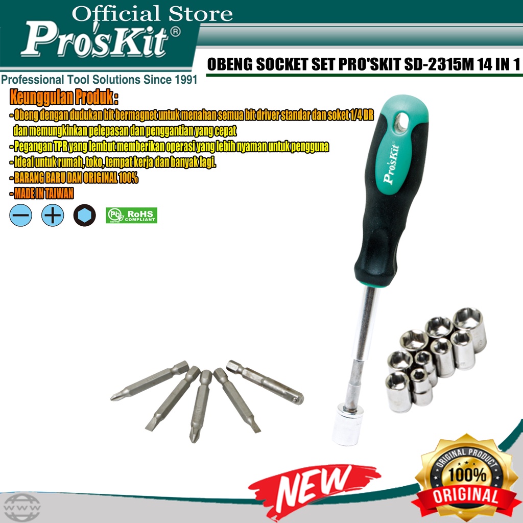 Jual Pro'sKit - Obeng Set - Kunci Socket Set Sd-2315M 14 In 1 Original ...